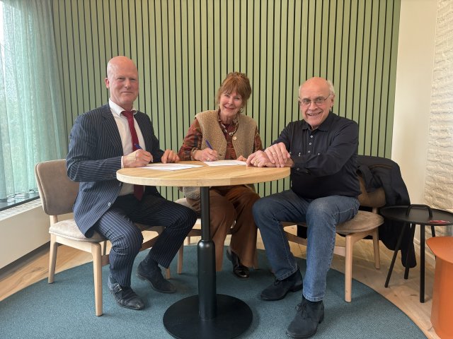 Chairman Janco van der Werf, secretary Hetty Visser, and Alderman van Opzeeland were present at the signing.